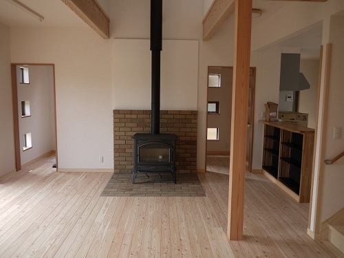 矢巾町の住宅地にある建物。 素敵な薪ストーブにより癒される空間になっております。 ウッドデッキにより趣味等の庭も充実できます。 吹き抜けを設けることにより薪ストーブによる柔らかな暖かさが建物全体を包み込みます。