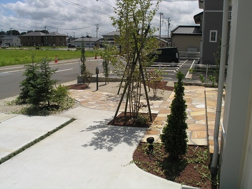 矢巾町の駅西口住宅地にある建物。 さわやかな洋風の外観。羨ましい駐車場オーバーハング扉。 外構もナイスな感じに仕上がっております 内部は大空間の吹き抜けやオープン階段によるゆとりのある空間として・・・・