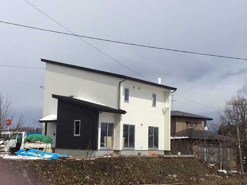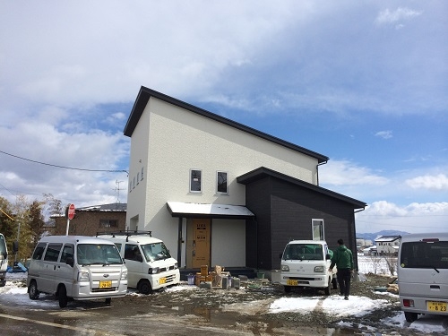 矢巾町にあります建物。 落ち着いたアンティーク調の配色が飽きの無い内装仕上げになるように・・・。 間仕切の無いオープンな空間とし、家族の気配を感じれる間取にしました。 オール電化の建物で将来、太陽光利用できるように計画されています。