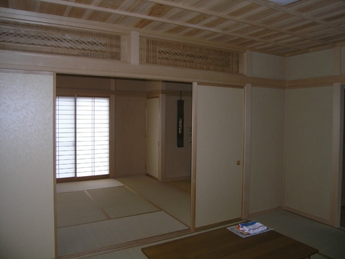 2階建ての和風の建物で、玄関を抜けると連続した2間の和室が