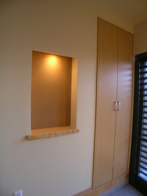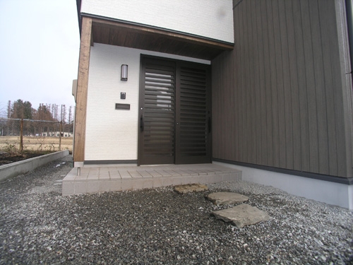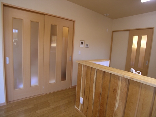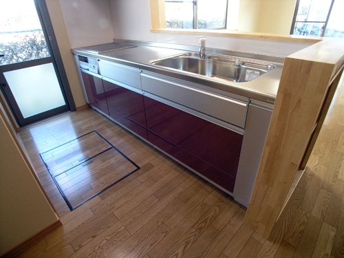 4号線バイパスから一本裏にあります。 機能性を重視。郵便ポストを下足収納内部に作成したり、ユニットバスの上部空間を収納棚にしてみたり・・・・。 台所には、食器や乾物・ゴミ箱などを収納できる3枚扉の収納スペースを確保しました。 ポイントは、実家から頂いた木材。 最近では高価な栗などの木材を提供して頂き、居間のキッチン壁・2階の階段の手摺、外部のウッドデッキに使用させて頂き、おまけに玄関の踏み石まで頂きました。 思い出がたくさん詰まった新築住宅になったと思います。