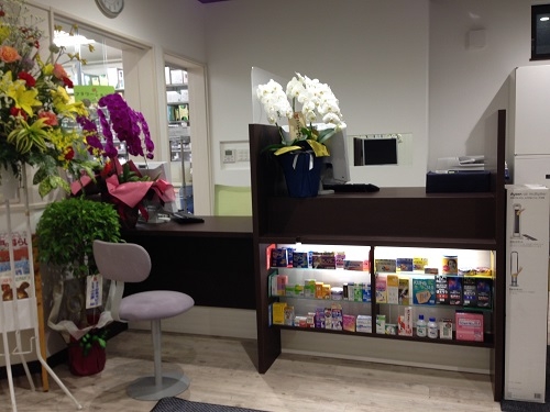西青山に移転しました"すみれ薬局"です。 モダンなイメージに一新させ、新たにオープンしました 他には無いショップ風イメージとしました。 マッサージチェアやくつろぎカウンター等・・・お客様がくつろげるように配慮された薬局になっております。