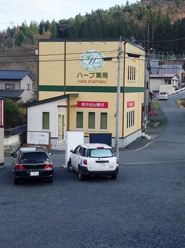 大槌町吉里吉里の"ハーブ薬局"です。 幸運の黄色をベースに目立たせた薬局店舗。 優しい色調の内装がお客様を和ませてくれます。