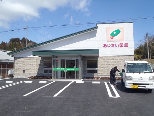 一関市、伝承館迎えの"あじさい薬局"です。 一関中心部を少しだけ離れた場所にオープン。 付近の緑溢れる地形と隣接する医院様の外観も考慮し、木の梁を表した内装にしてみました。 OTCも充実させ、地域の方々にも利便性のある店舗としてご利用頂けるのではないでしょうか。。。